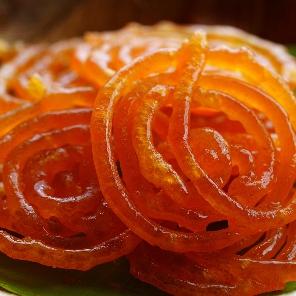 Ribbons of flour dough fried in pure desi ghee and soaked in sugar syrup, flavored with saffron and cardamom.