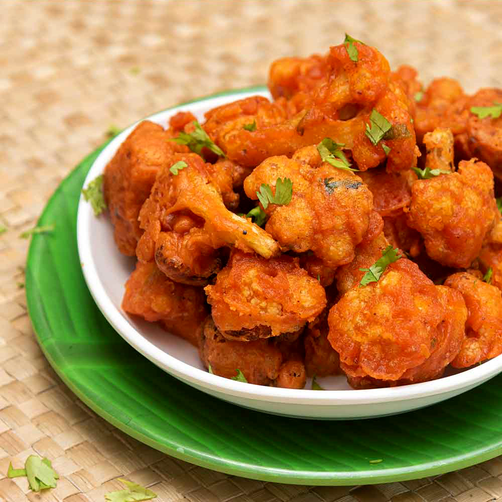 Cauliflower tossed in Chilli/soya/tomato sauce.