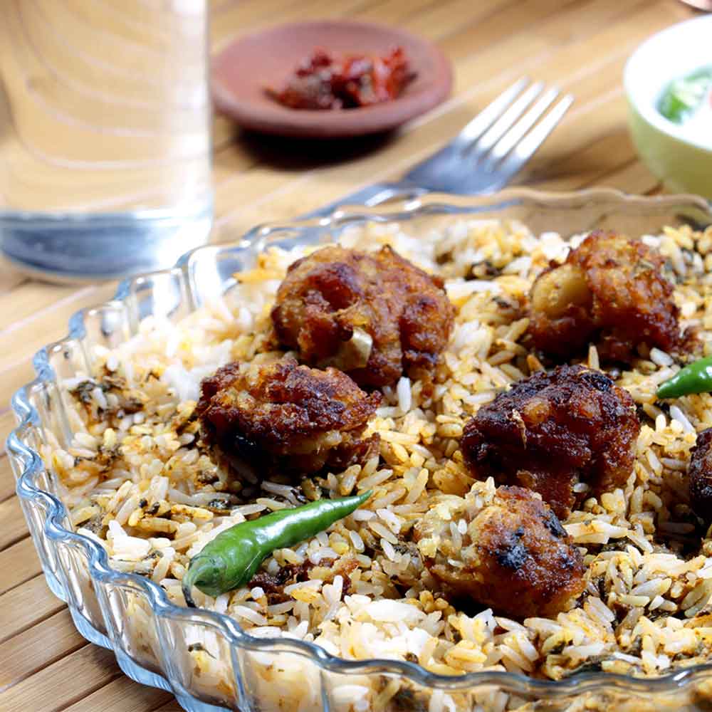 Fragrant dum biryani with succulent vegetable koftas, slow-cooked to aromatic perfection.
