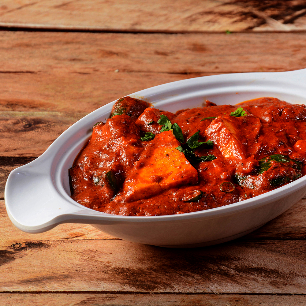 Paneer cubes marinated in a spiced yogurt-based marinade and cooked in a special Sattvik cashew nut gravy.